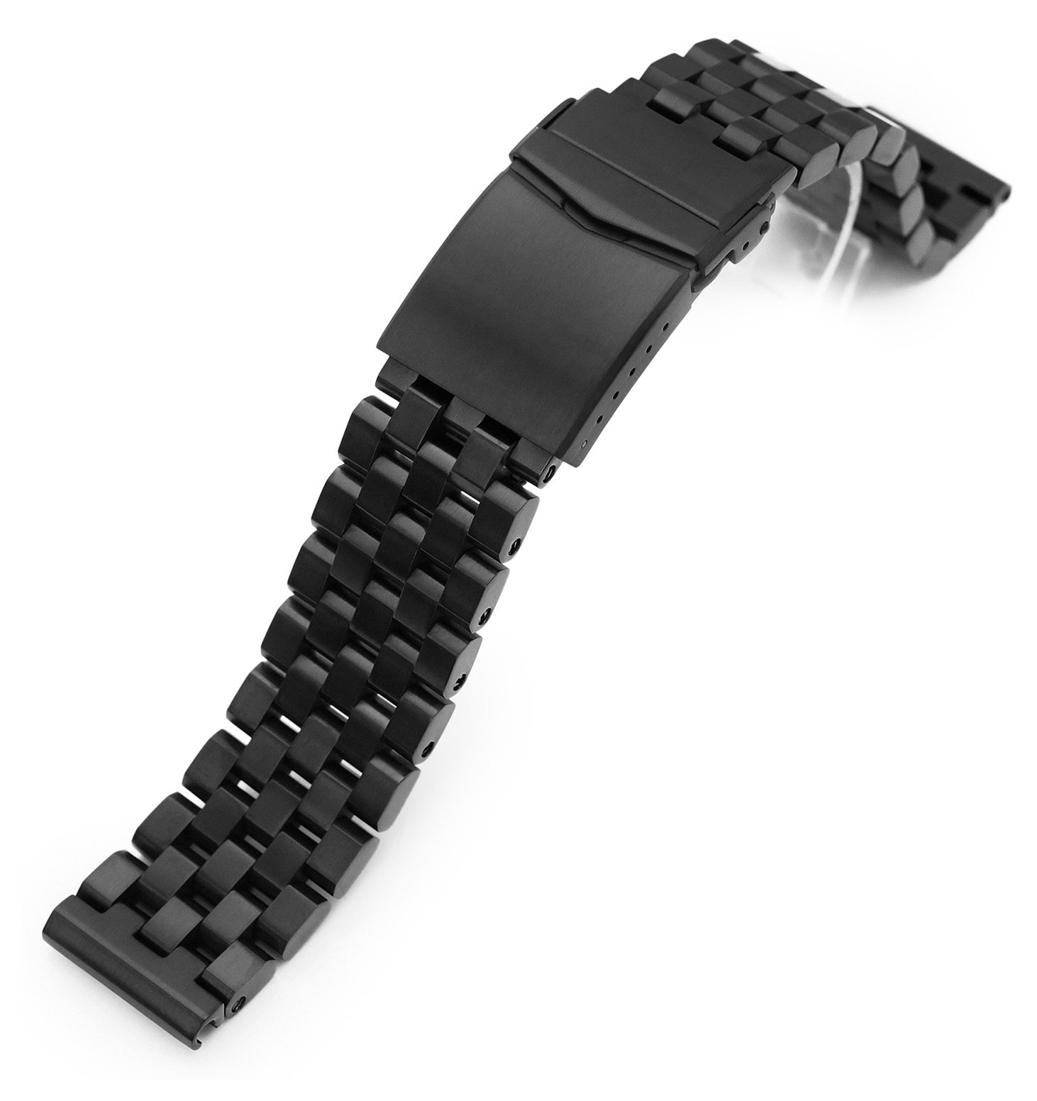 MiLTAT Super Engineer II Straight End 22 mm stålarmband SS222220BLC024. Tillverkad i 316L kirurgiskt stål med "Diamond-like carbon" DLC coating. Längden på armbandet är justerbar. I paketet ingår två stycken bandstift.