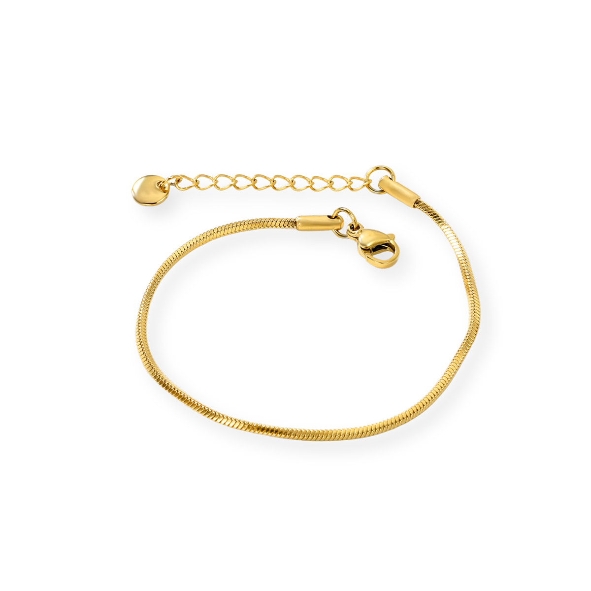 Madoww Ivy-armbandet är ett elegant och tidlöst smycke som ger en subtil touch till vilken outfit som helst. Dess minimalistiska design och vackert böjda ormkedja skapar en klassisk look som är perfekt för vardagsbruk eller speciella tillfällen. Tillverkat av högkvalitativt 18K PVD-förgyllt rostfritt stål är Ivy-armbandet vattenbeständigt, allergivänligt och designat för att hålla utan att blekna eller mattas. Den justerbara längden säkerställer en bekväm och säker passform, och dess lätta konstruktion gör det diskret och bekvämt att bära. Detta smycke är den perfekta kombinationen av enkelhet, elegans och hållbarhet - det perfekta tillskottet till vilken smyckessamling som helst.