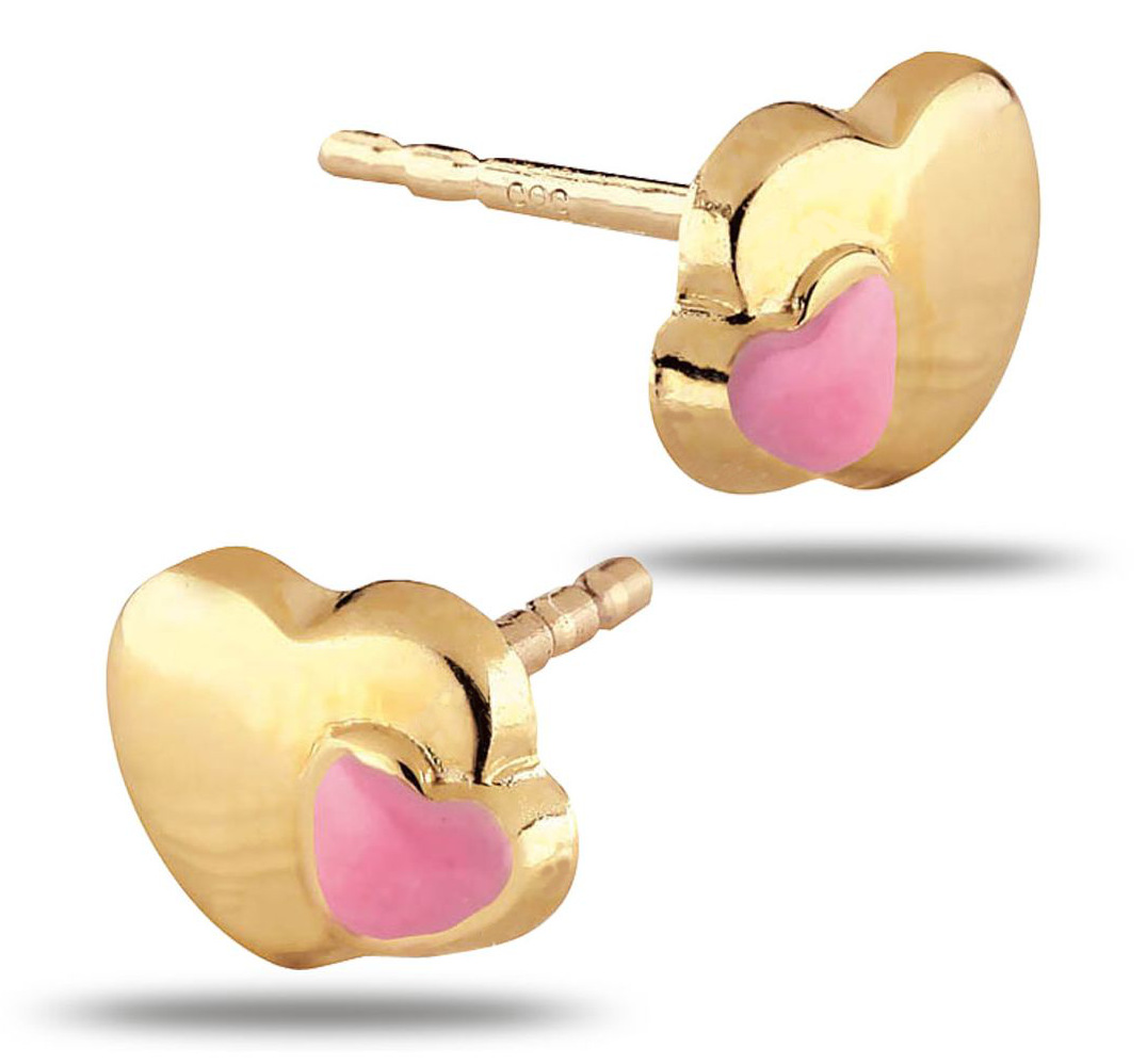 Guldörhängen hjärta ljusröd emalj 139761pink - Ett par romantiska guldörhängen som är dekorerade med emalj. Örhängenas höjd är 4,2mm och de levereras i tillverkarens originalförpackning.