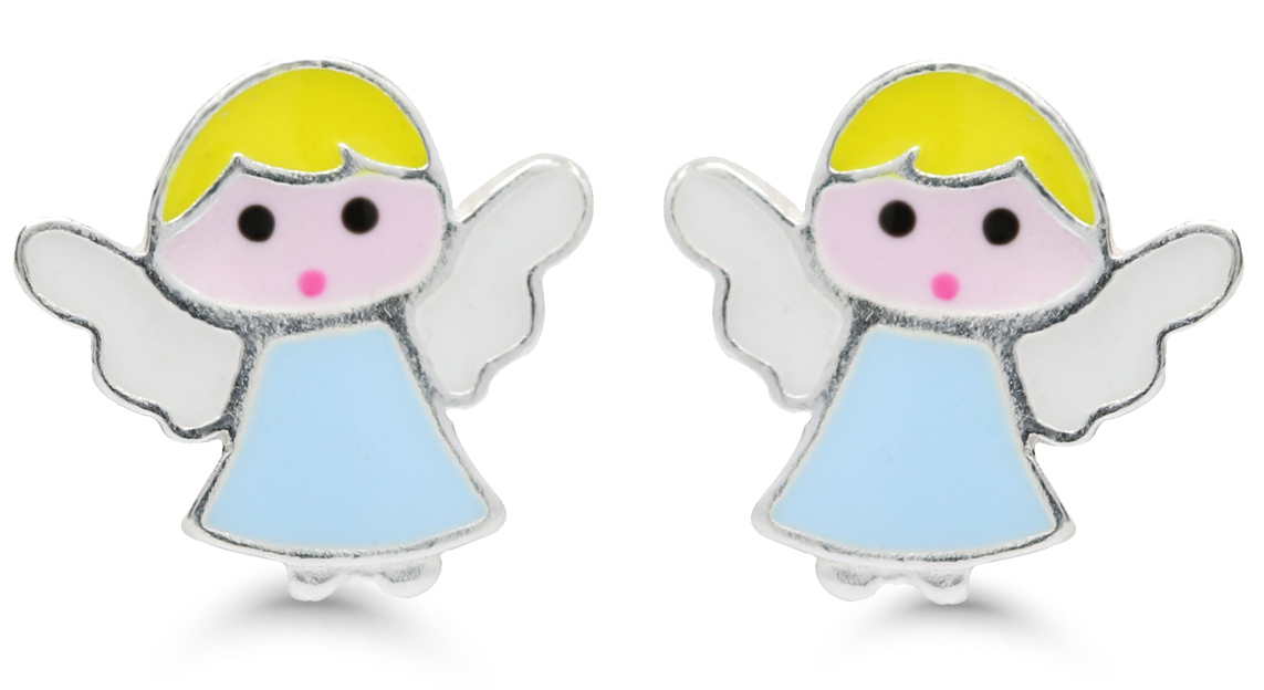Silverörhängen ängel emalj blå DE-0517aqua. Ett par vackra örhängen i silver som är dekorerade med emalj. Örhängenas höjd är 9,2 mm. Örhängena levereras i tillverkarens originalförpackning.