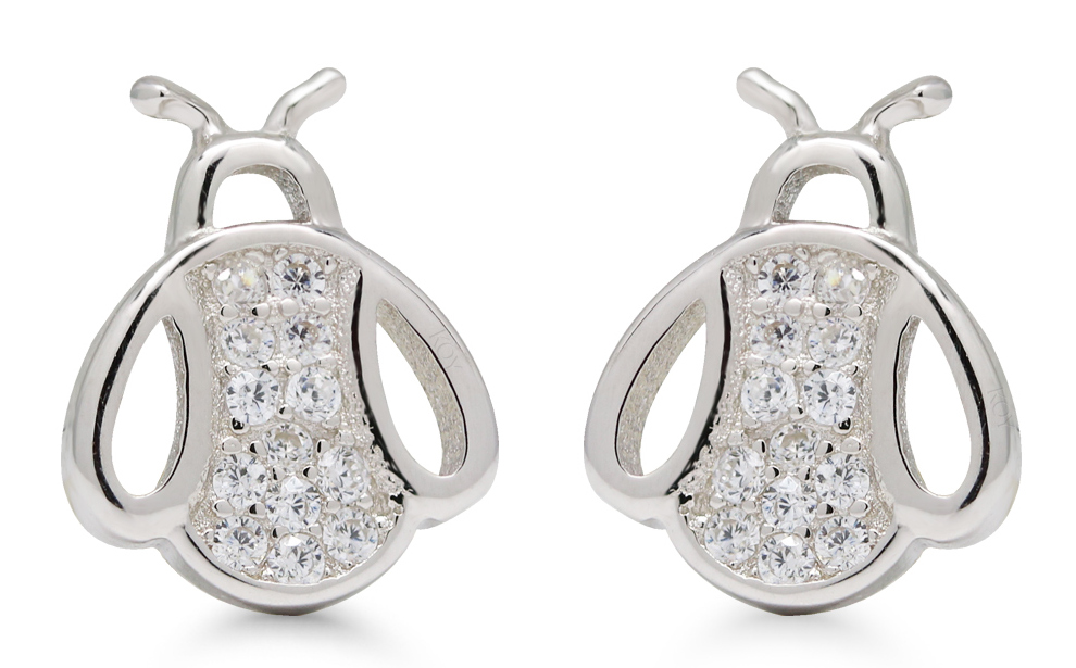 Silverörhängen fluga zirkon E-0695Z. Ett par söta örhängen som är dekorerade med gnistrande zirconia. Örhängenas höjd är 9,5mm och de är tillverkade i sterling silver. Örhängena levereras i tillverkarens originalförpackning.