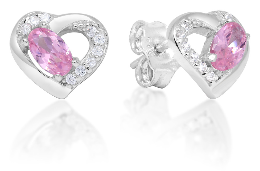 Silverörhängen hjärta zirkon ljusröd E-1551Zpink