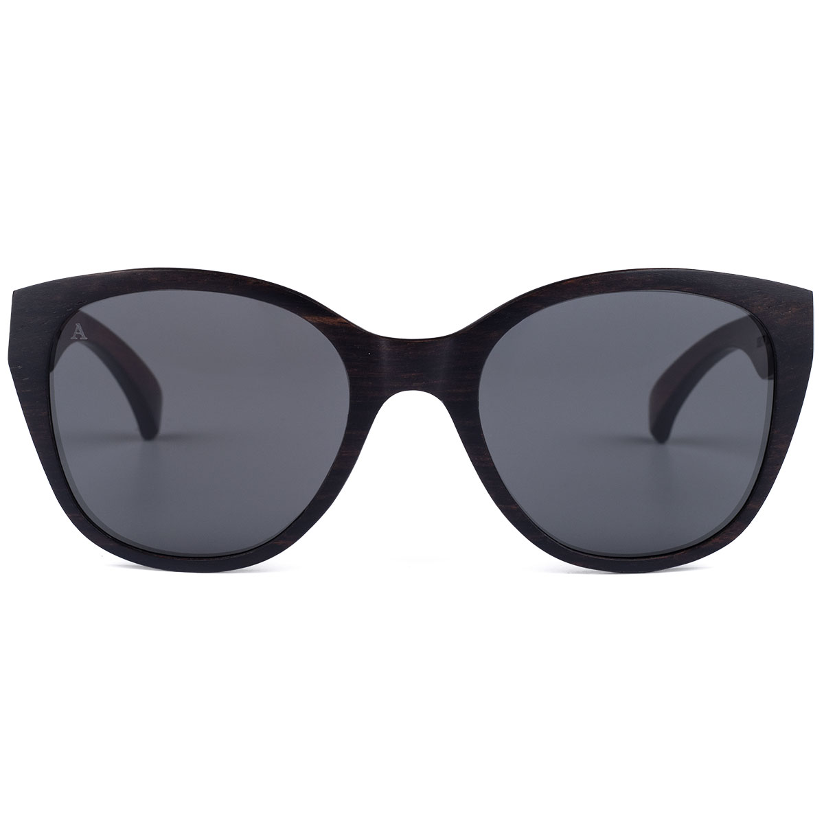 Aarni Belle Eebes polariserade solglasögon har en vacker cat eye-form. Bågarna är tillverkade av ebenholtsfanér, förstärkta med Carbon Core™ kolfiberkonstruktion mellan träfanéren. Detta ger Aarni Belle-solglasögonen i trä en hållbar konstruktion. Looken avslutas med mörkgrå polykarbonatlinser med 100% UVA- och UVB-skydd. De polariserade linserna eliminerar inte bara normal bländning utan även reflektioner från horisontella ytor och skyddar ögonen från ljus som studsar mot vattenytor, snö eller våta vägar. Fjäderskalmar gör det enkelt att sätta på sig glasögonen. Aarni Belle Eebe polariserade solglasögon levereras i ett fint glasögonfodral.