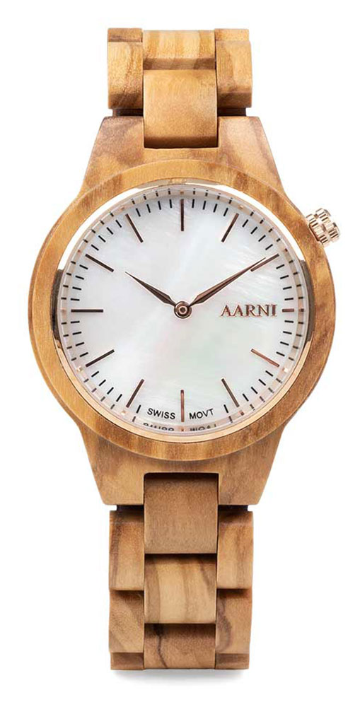Olivträden är ett vackert träslag. Denna klockan har ett schweizisk Swiss Ronda 1062 Quartz kvartsurverk med fyra syntetiska juveler. Aarni klockorna har garanti upp till 3 år och de skickas hem i tillverkarens originalförpackning.