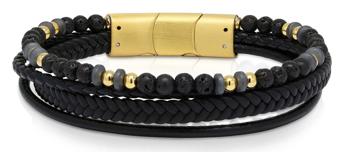 Förhöja din look med detta Ace of Spades svart armband läder/lavasten/stål SSLB-118GP. Tillverkad i svart läder och prydd med metall pärlor och lavasten. Längden på armbandet är justerbar mellan 20-21,5 mm.
