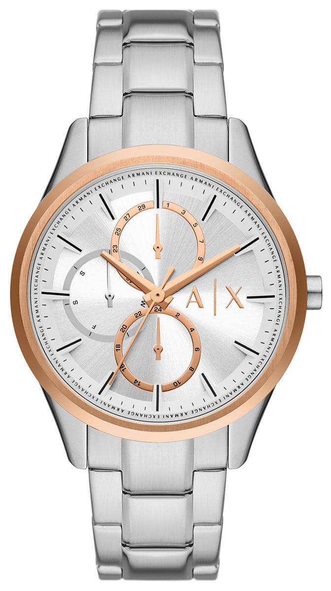 Om det är svårt att välja en vardagsklocka är en tvåfärgad klocka ofta det bästa valet. Tack vare den tvåfärgade look är den här Armani Exchange Dante AX1870 armbandsuret för män lätt att kombinera med olika accessoarer. Dessutom är urtavlan, 24-timmarsklockan och veckodagsdisplayen bra verktyg för din vardag. Armani Exchange Dante AX1870 har en välproportionerlig 42 mm bred kropp som passar bra för mäns handleder och är bara 8,9 mm djup, vilket gör att den sitter bekvämt på handleden. Både boetten och armbandet är tillverkade av hållbart stål. Bezellen är i roseguldfärgad stål. Armani Exchange-klockorna levereras i tillverkarens originalförpackning och har en två ars garanti.