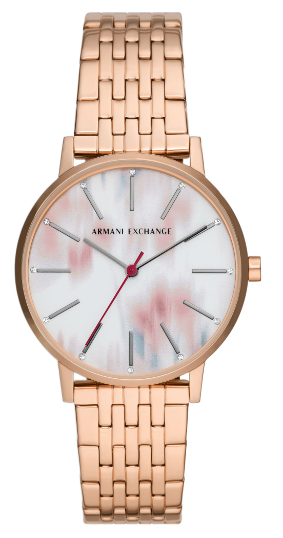 Färgade effekter och tie-dye är en av de hetaste modetrenderna just nu. Armani Exchange LOLA AX5589 har en vacker färg i roséguld och en minimalistisk urtavla med en vacker färg som kombinerar vitt, rött och persika. Lola AX5588 är lättviktig, vilket gör den till exempel till en perfekt sommarklocka. Armani Exchange-klockor har en garanti på 2 år och levereras i tillverkarens originalförpackning.