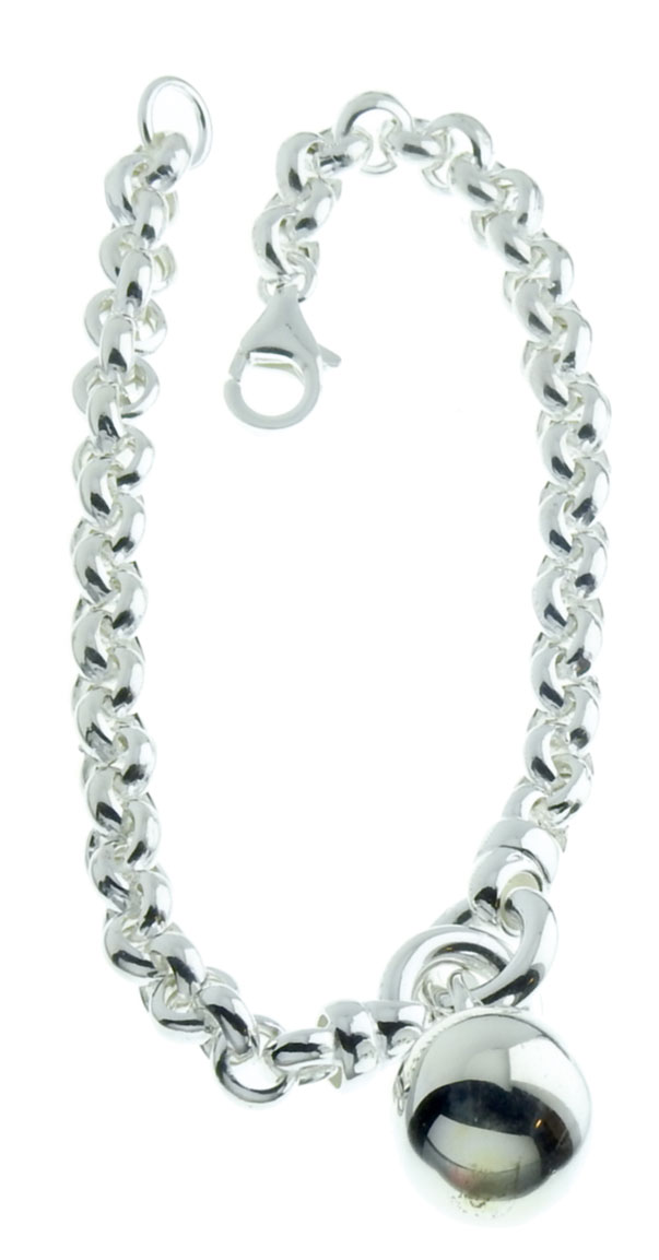 ‌Silver armband med ärtkedja + kula hänge KES.R31/19. Berlockens mått: 10 mm, kedjas längd: 19 cm.