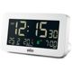 Braun BC10W väckarklocka med digital skärm och bakgrundsljus. Denna digigtalalrmklocka har 12/24 tidvisning och du kan ställa in snoozetiden till 5 minuter. Klockan visar tid, datum temperatur, och tid för alarm. Klockan har ett stilrent utseende, och mäter 135 mm x 75 mm. Braun BC10W alarmklocka fungerar med AA-batterier, ingår ej i paketet.
