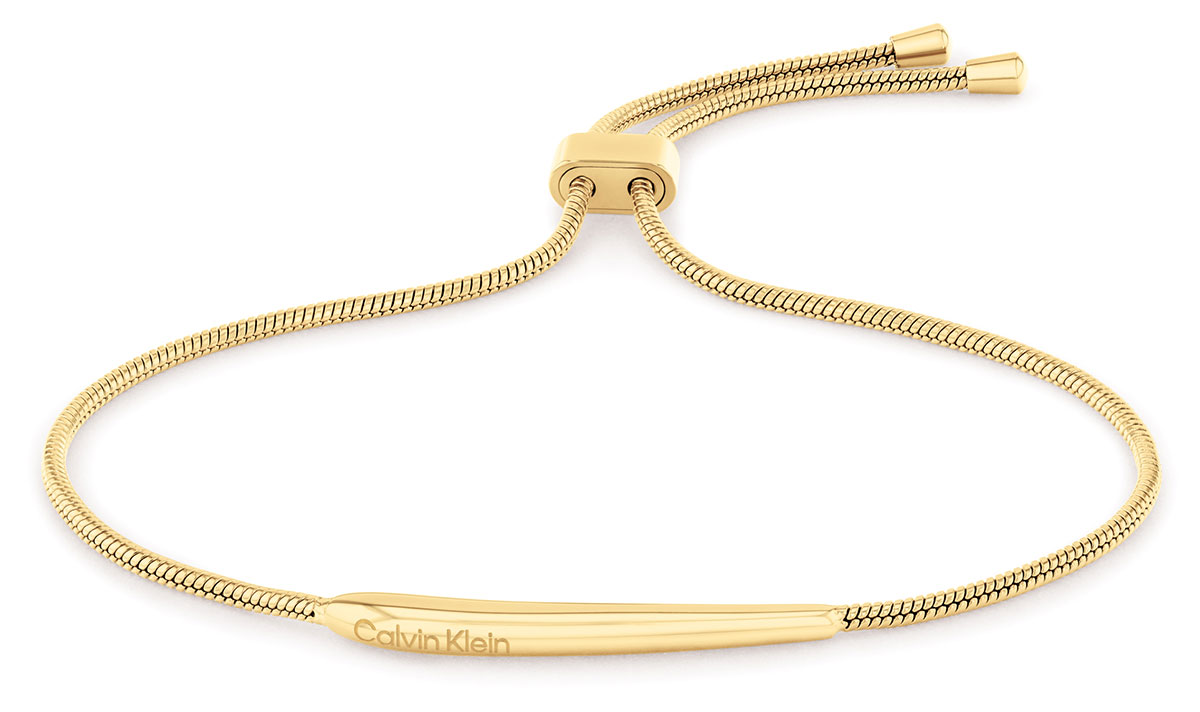 Calvin Klein Elongated Drops 35000342 är ett fantastiskt guldfärgat armband som passar till alla outfits. Armbandet är tillverkat av rostfritt stål vilket gör det slitstarkt och hållbart, och kommer att se bra ut i flera år. Storleken på armbandet kan justeras mellan 16 cm och 18,5 cm. Alla Calvin Klein-armband levereras i tillverkarens originalförpackning.