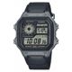 Digitalklockan Casio AE-1200WHUB-8AVEF har en 42,1 mm bred och 12,5 mm tjock boett av harts. Akrylglaset skyddar urtavlan som har världstid, stoppur, timer, 5 dagliga larm, automatisk kalender, 12/24h, datum och veckodagsvisning. Den svarta textilremmen är bekväm att röra vid och den lätta totalvikten på bara 39 gram bidrar till klockans komfort. Casio AE-1200WHUB-8AVEF har en vattentålighet på 100m/10atm, vilket gör den lämplig för dykning och snorkling.