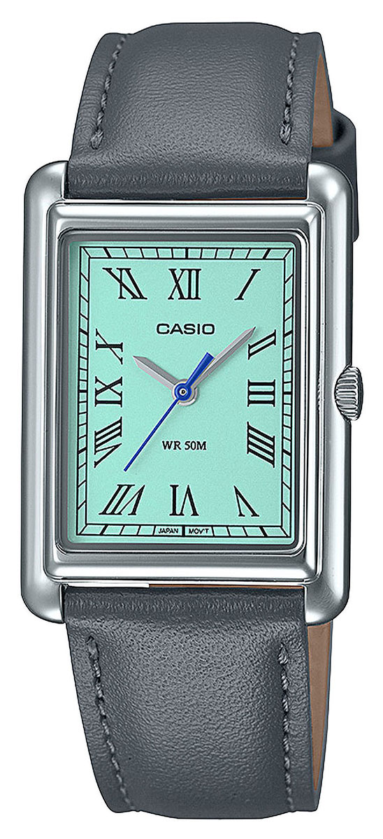 Casio Collection LTP-B165L-2BVEF är en elegant, fyrkantig klocka, lämplig för både fest och vardag. Klockans turkos urtavla har klassiska romerska index och ett mineralglas skyddar urtavlan. Boetten är 25 mm brett och 8 mm tjockt. Boetten av klockan är tillverkade av rostfritt stål och är vattentät (ISO 22810 certified: tal vattenstänk). Armband är i läder.