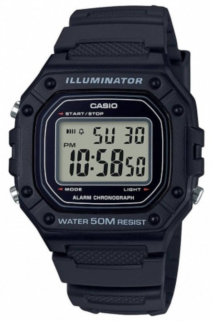 Herrklockan Digital Casio W-218H-1AVEF är en liten, svart klocka som enbart väger 37 gram. Den har en rektangulär digital display, är helt tillverkad av plast och drivs av kvarts. Klockan har vattentäthet 5 atm och klarar därför vattenstänk. Armbandet har justerbar längd och stängs med ett bygellås. Måtten är 44,4 x 43,2 x 10,8 mm. Klockan kommer med 2 års garanti och skickas i tillverkarens originalbox.