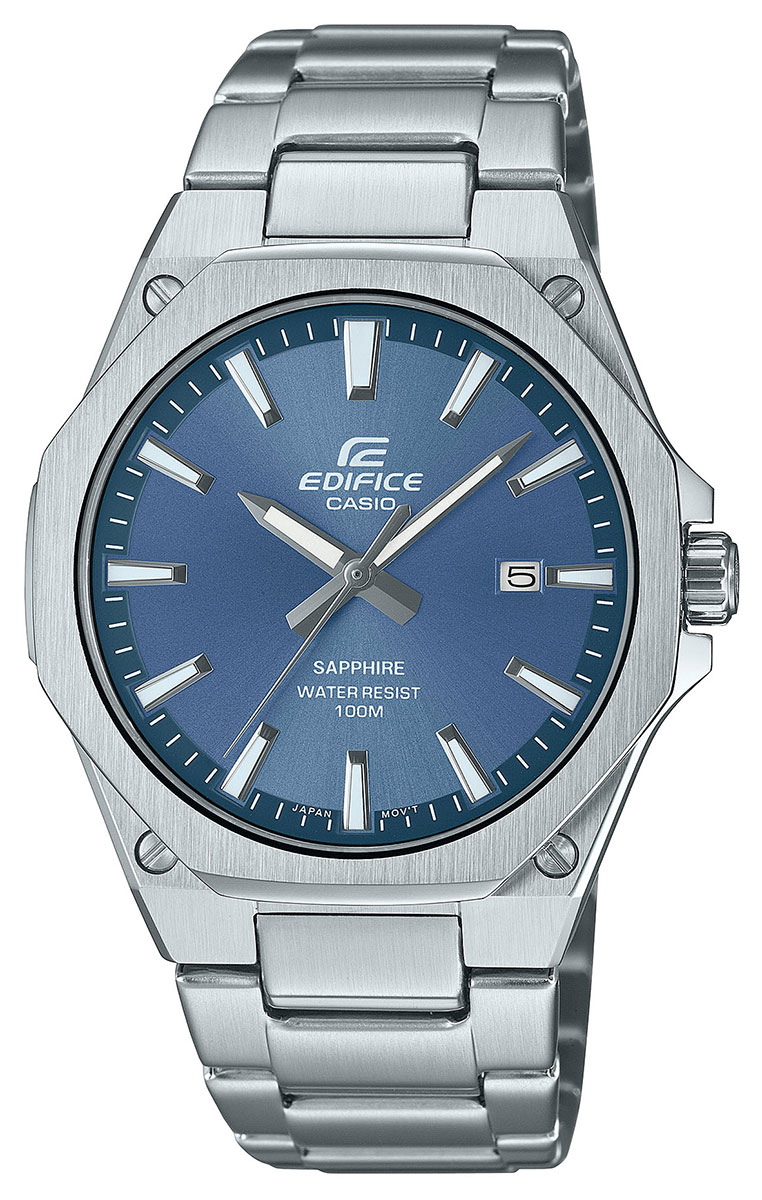 Casio Edifice Classic EFR-S108D-2AVUEF är ett stiligt och tunn klocka helt i rostfritt stål med en integrerad armband och åttahörning bezel. Batonindexen och visare är på den blått urtavla är självlysande och datumvisning sitter vid klockan 3. En klassisk klocka sitter på handleden på varje situation.