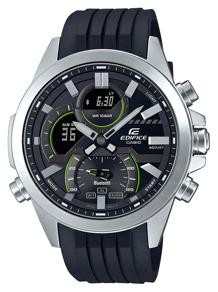 Casio Edifice ECB-30P-1AEF är en tidlös och bekymmerslös kvartsklocka från Japansk Casio. Denna klocka är i rostfritt stål, och har en stor boett på 48,7 mm och en matchande polyuretan rem. Urtavlan har självlysande neobrite markörer och händer med visarjustering, och denna klockan kan kopplas ihop med mobilen via Bluetooth. Använda "hitta min mobil", se tidsskillnaden mellan 300 städer runt om i världen och mycket mer via CASIO WATCHES app. Passar ihop med iOS och Android enheter.