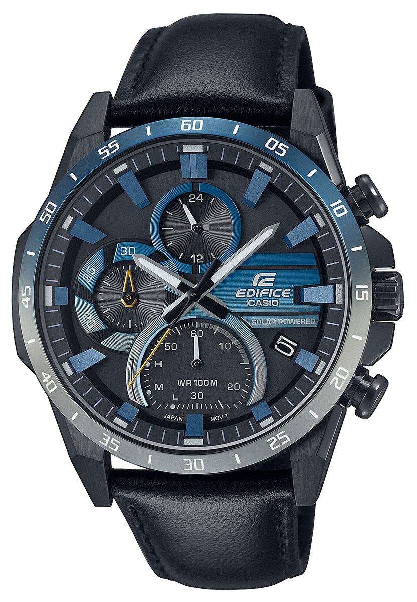 Casio Edifice EQS-940NL-1AVUEF Midnight Drive drivs av en soldriven mekanism som lagrar energi för fem månaders normal drift när den är fulladdad. Boetten i rostfritt stål har en bredd på 49,5 mm och en tjocklek på 12,5 mm. Klockans stålram är titankarbidbelagd, vilket gör den mycket hållbar och av hög kvalitet. Längden på den nattsvarta läderremmen är justerbar från 175 till 215 mm. Casio Edifice EQS-940NL-1AVUEF tillhör vattentäthetsklassen 100m / 10atm, dvs den är lämplig för ytsimning och snorkling, men inte för dykning.
