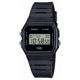 Digitalklockan Casio F-91WB-1AEF är lätt att bära med sig tack vare sin smala och lätta storlek. Kroppen är 35,2 mm bred och 8,5 mm tjock och väger bara 21 gram totalt. Den digitala LCD-displayen visar datum/dag, ett dagligt alarm, en timsignal och ett stoppur. Klockan är tillverkad av miljövänliga material. Den svarta boetten är tillverkad av harts och armbandet är tillverkat av biobaserat harts, vilket förväntas minska miljöpåverkan. Casio F-91WB-1AEF tillhör vattentäthetsklassen 30 m/3 atm, vilket innebär att den är stänkvattentät.