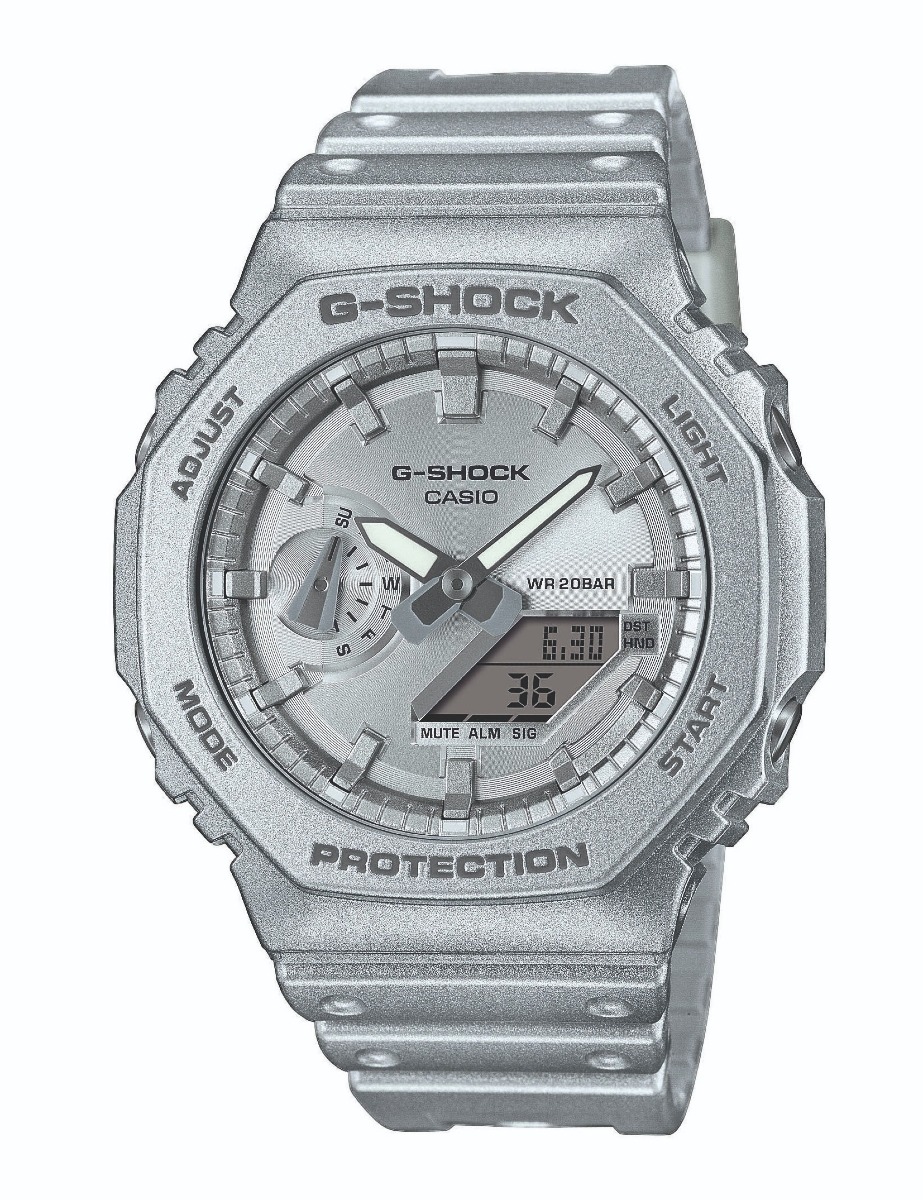 Casio G-Shock Forgotten Future GA-2100FF-8AER har en helt silverfärgad finish som för tankarna till en svunnen tid. Denna futuristiska retroklocka är en av Casios nyheter för 2023, och påminner om de futuristiska äventyrsfilmerna från 1980- och 1990-talet, där människor i framtiden körde flygande bilar och bar metalliska kläder. Digitalklockan är tillverkad av resin och har en octagonal bezel som är 48,5 mm i bredd. Looken är sportig och den metalliska ytan fulländar klockans retro-futuristiska look. Casio G-Shock Forgotten Future GA-2100FF-8AER levereras i tillverkarens originalförpackning.