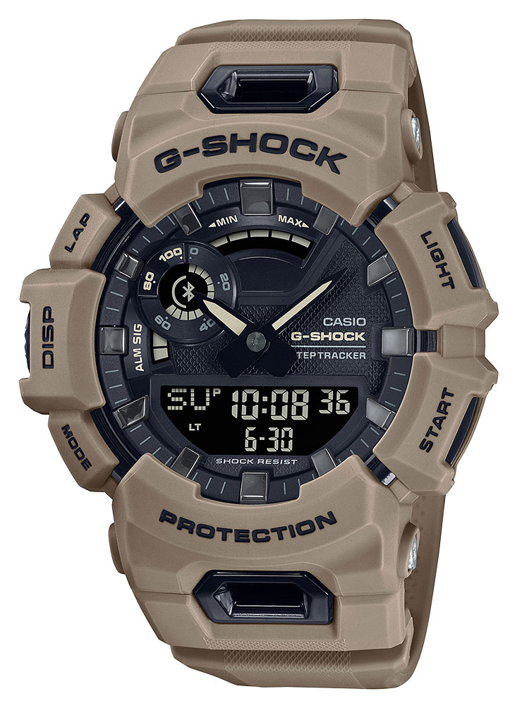 Casio G-Shock G-Squad GBA-900UU-5AER är den nyaste addition till Casio hybrid klocka serie, och kombinerar de bästa G-shock egenskaper med smarta funktioner såsom stegräknare, träningsdata, och andra funktioner som hjälper dig hålla koll på träning och hälsa. Klockan har ett stort tydligt skärm med analoga visaren, och klockan kan ansluta trådlöst till din smartphone och och du får tillgång till en mängd användbara funktioner. Denna klockan också visar inkommande samtal direkt på klockskärm. Koppla ihop med G-SHOCK MOVE appen och får du tillgång till träningsdata såsom kalorier och steg. Stöttålig boett, 20 bars vattentäthet, och ett automatiskt displayens bakgrundsljus som aktiveras bara vrida lätt på handleden menar att klockan klarar också lite mer tuffare förhållanden. Klockans stor boett på 51 mm och sand brun färg passar mycket bra till en sportig stil.