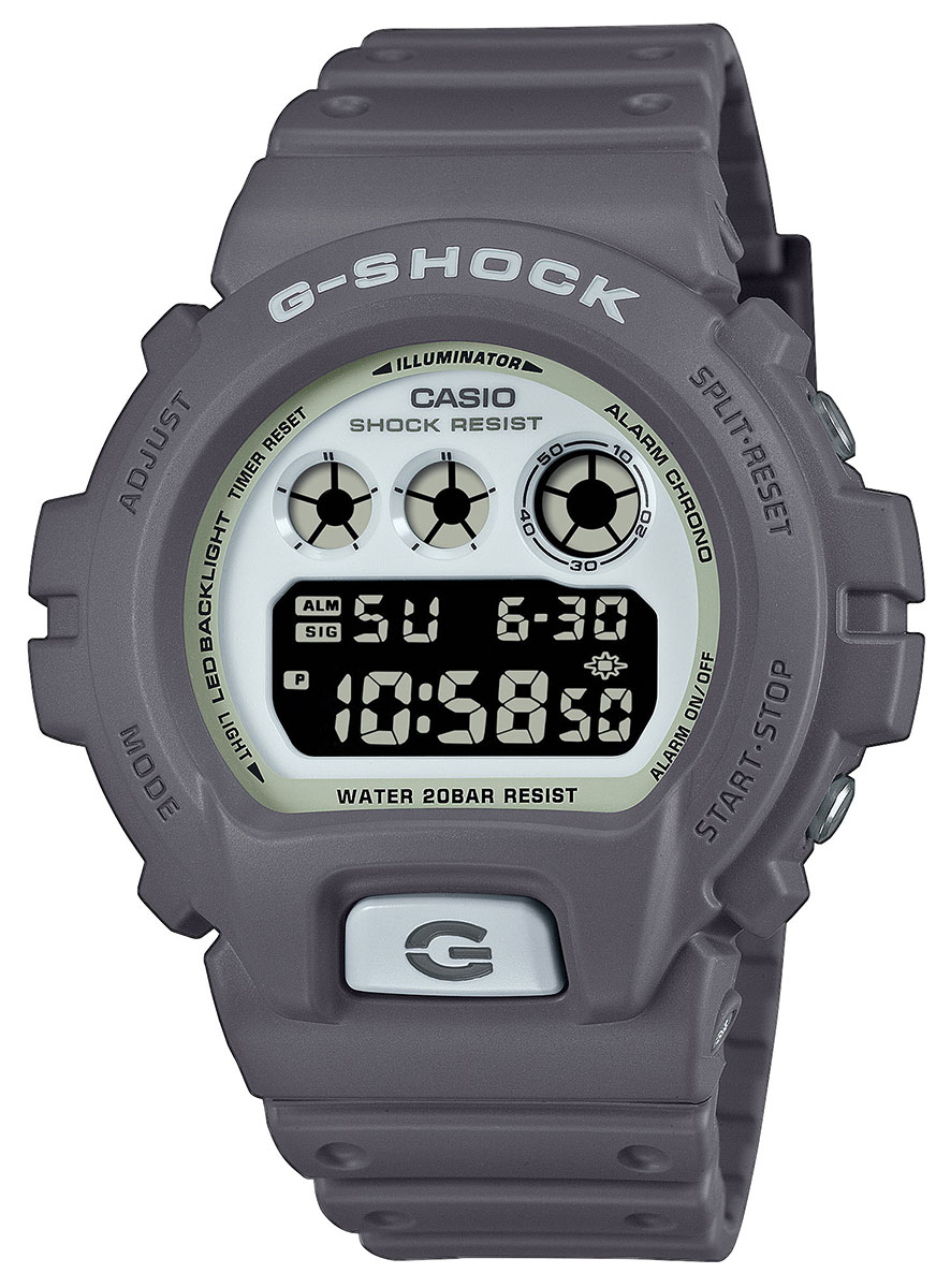 Casio G-Shock Limited Edition DW-6900HD-8ER Hidden Glow har fatt sitt utseende från originella Casio DW6900, GA140, GA700 och GAS100 klockor. Denna Casio G-Shock Limited Edition DW-6900HD-8ER Hidden Glow digitalklocka är fullmatad med olika funktioner som kalender, timer och larm. DW-6900HD-8ER som släpps våren 2024 och tilllhör i Hidden glow-serien, har en mycket unik look för 2024, med en urtavla som lyser i upp under svag ljusförhållanden. Gråfärgat boett mot del lume urtavlan ger en kontrast som alltid matchar. Urtavlan har fyra olika urtavlor, vilket gör det lätt att läsa av tid och datum. Boetten är stöttålig och vattenskyddad upp till 200 meter. Casio G-Shock Limited Edition DW-6900HD-8ER Hidden Glow digital klocka levereras i sitt original ask och har en 2 års garanti.