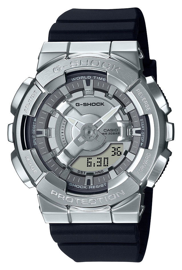 Casio G-Shock Metal Covered GM-S110-1AER är en G-Shock ana-digi klocka med en slimmad boett och iögonfallande 3D design detaljer. GM-S110-1AER har både analoga händer och en digital skärm vid klockan 5. Visaren har en självlysande Neobrite beläggning. Den 42 mm boett är perfekt för casual klädseln, och boetten är matchad med ett svart polyuretan armband. Boetten är stöttålig och vattentät ned till 200 m. Casio Ana-digi klockor har garanti upp till 2 år.