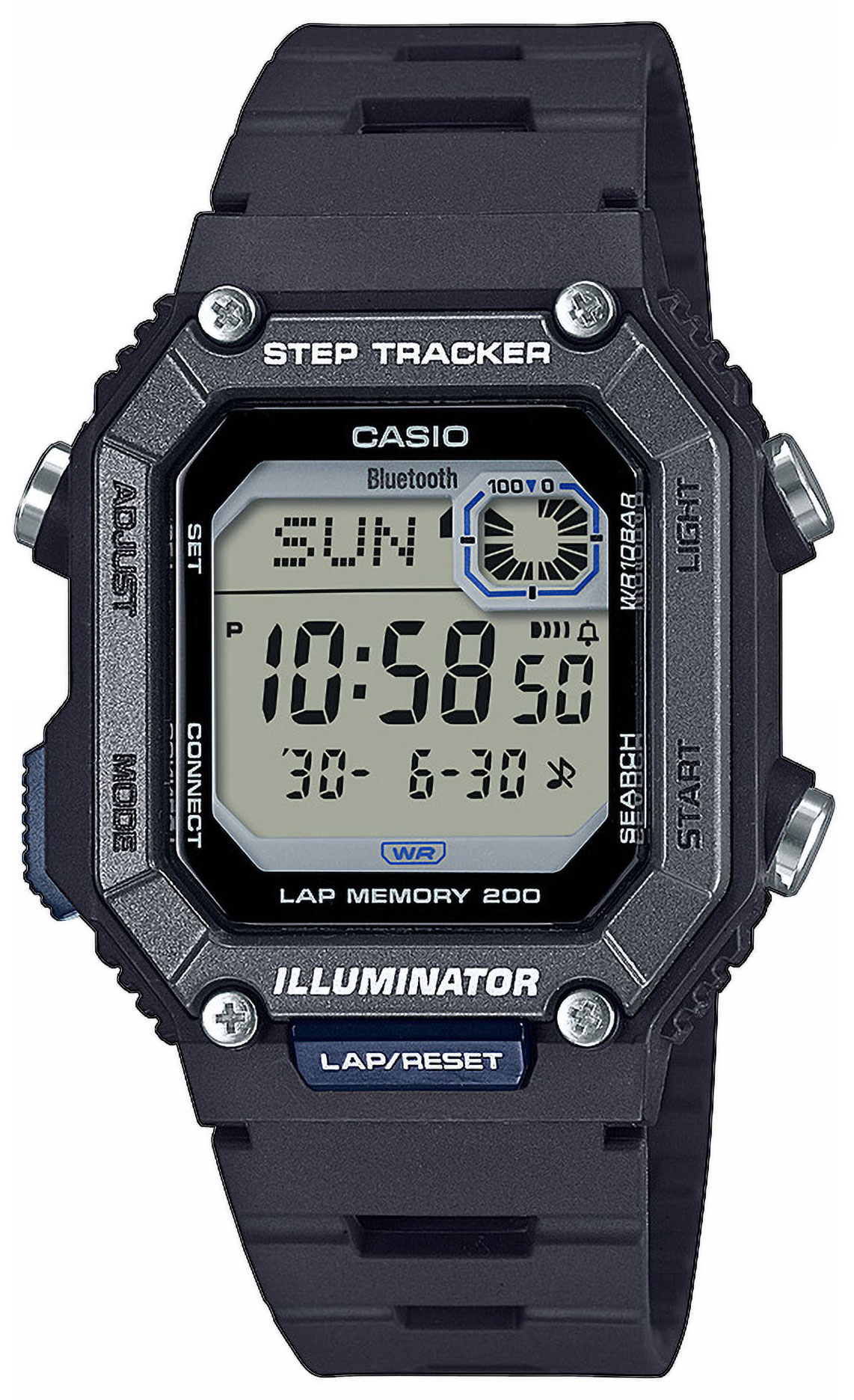 Den digitala klockan Casio Limited Edition WS-B1000-1AVEF låter dig para klockan ihop med mobilen genom Bluetooth®. Öppna upp en mängd av nya funktioner, som gör denna klockan till den perfekta följeslagaren för sportaktiviteter och välbefinnande såväl som vardagliga uppgifter.
