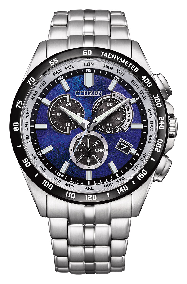 I linje med temat ""Blue is one world"" har CB5874-81L en fantastisk urtavla som reflekterar ljuset likt havets yta. Den blå nyansen på urtavlan varierar beroende på ljuset, vilket skapar en skimrande och livfull effekt. Den vita mellanringen mellan den djupblå urtavlan och den svarta ramen förstärker den tredimensionella effekten och ger klockan ett fräscht utseende. Både urtavlan och Eco-Drive-tekniken är tillverkade av återvunna material, vilket gör klockan till ett miljömedvetet val.