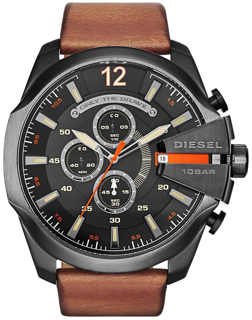 Diesel Mega Chief DZ4343 är en mycket imponerande klocka med svart boett, svart urtavla och brun läderrem. Boetten är 53 mm bred och 14 mm tjock, armbandet är 26 mm brett vid fästpunkten och har en kronograf och datum. Dieselklockor har en garanti på 2 år och levereras i tillverkarens originalförpackning.