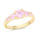 Babyringen SBR-1291pink är dekorerad med flera ljusröda, syntetiska zirkonia. Storleken på mittstenen är 3 mm och tjockleken på skenan är 0,7 mm. Dopringen är tillverkad i 14-karats guld. Ringens inrediameter är 11 mm.