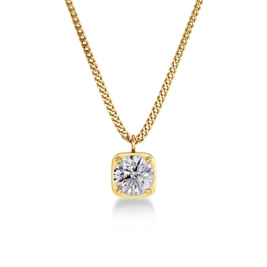 Smyckena är tillverkade av högkvalitativt rostfritt stål och pläterade med 14 karats guld. Kedjan är 42 + 3 cm lång, så den kan justeras till önskad längd. Hängets storlek är 6 x 6 mm.
