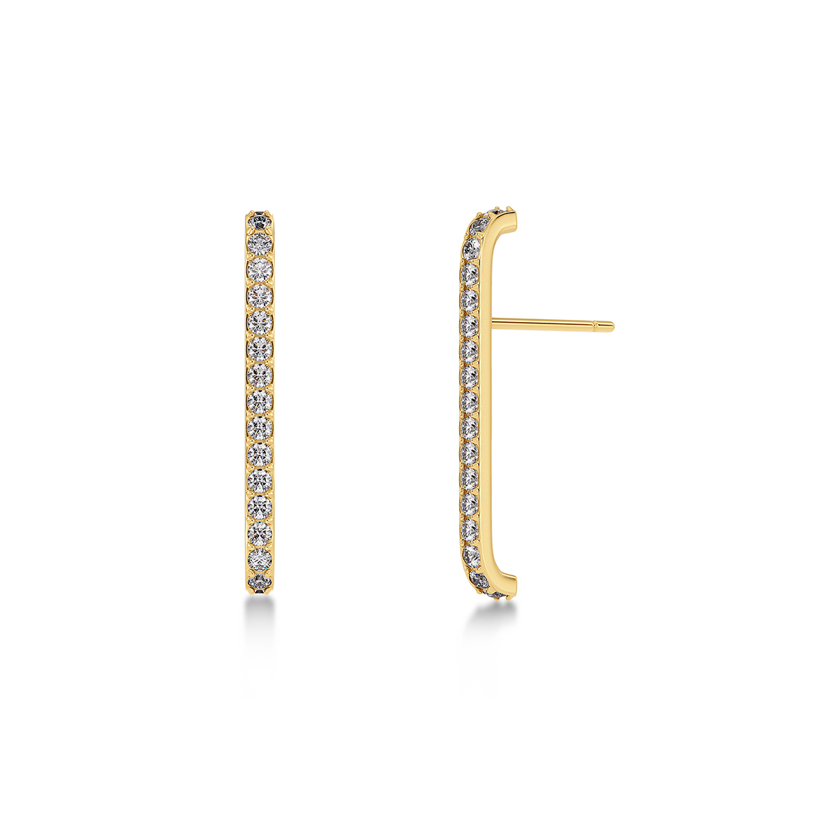 Plié-kollektionen hämtar inspiration från den klassiska balettens graciösa linjer och ger örhängena rörelse, uttryck och tidlös femininitet. Edblad Plié Lobe Studs guldpläterade örhängen 129461 är delikata men ändå slående – de följer vackert örat och hela deras framsida är täckt med glittrande, klara stenar. Smycket är färdigt med 14 karats guld och sitter vackert som en förlängning av örsnibben och reser sig ovanför örsnibben, vilket skapar ett lyxigt intryck utan att vara för stort.