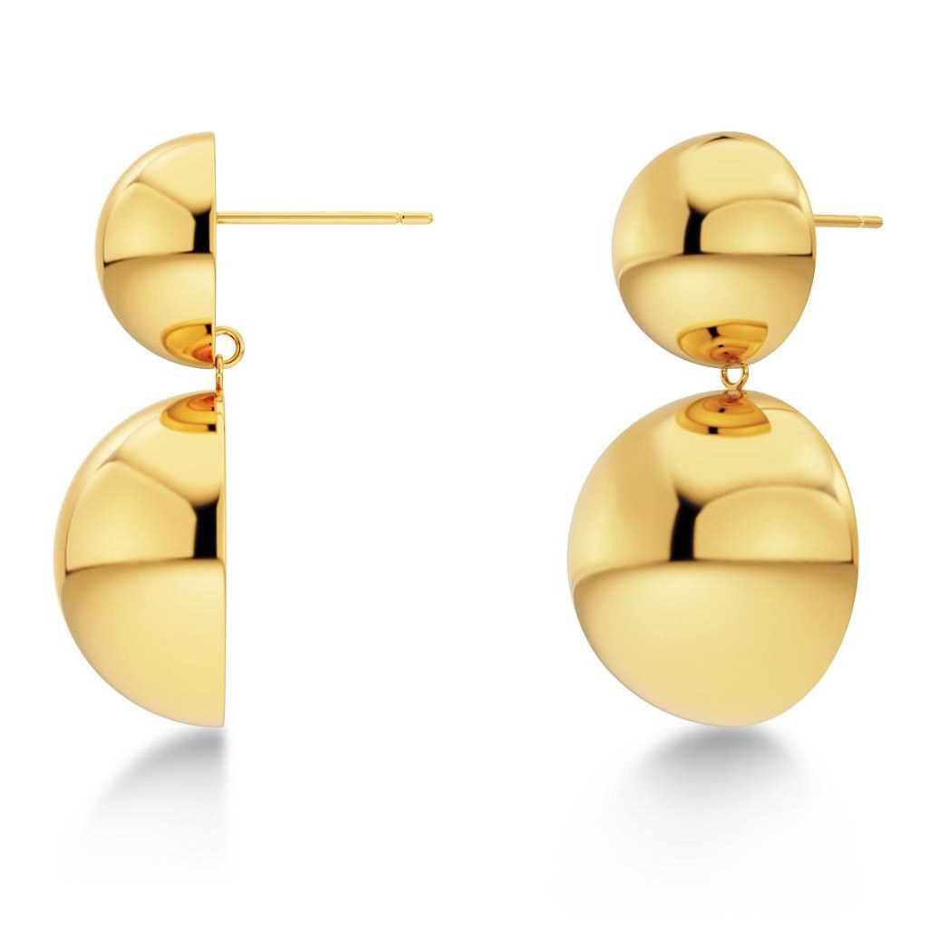 Edblad Sphere L-örhängena är ett slående och modernt val som utstrålar djärv elegans. Smyckets design är baserad på två vackra halvklot som bildar en harmonisk och skulptural helhet. Den reflekterande guldpläterade ytan ger smycket en lyxig glans och gör det till ett blickfång för både vardag och fest.