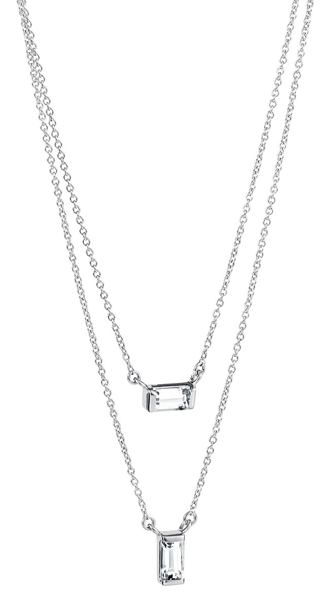 Efva Attling A Clear Dream Stud 10-100-01988/4045 halsband är tillverkat av återvunnet sterlingsilver och har 6,4 x 3 mm klara kvartskristaller på båda kedjorna. Halsbandet är justerbart till 40, 42 eller 45 cm i längd. Efva Attlings smycken levereras i tillverkarens originalförpackning.