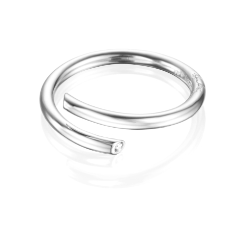 Efva Attling Hug armband 13-100-01600/1700 slingrar sig runt ditt finger som en kärleksfull kram. Armbandet är tillverkat av sterlingsilver och är utsmyckat med en 0,01 carat briljantslipad diamant. Ringen är 2,5 mm tjock. Efva Attlings smycken levereras i tillverkarens originalförpackning.