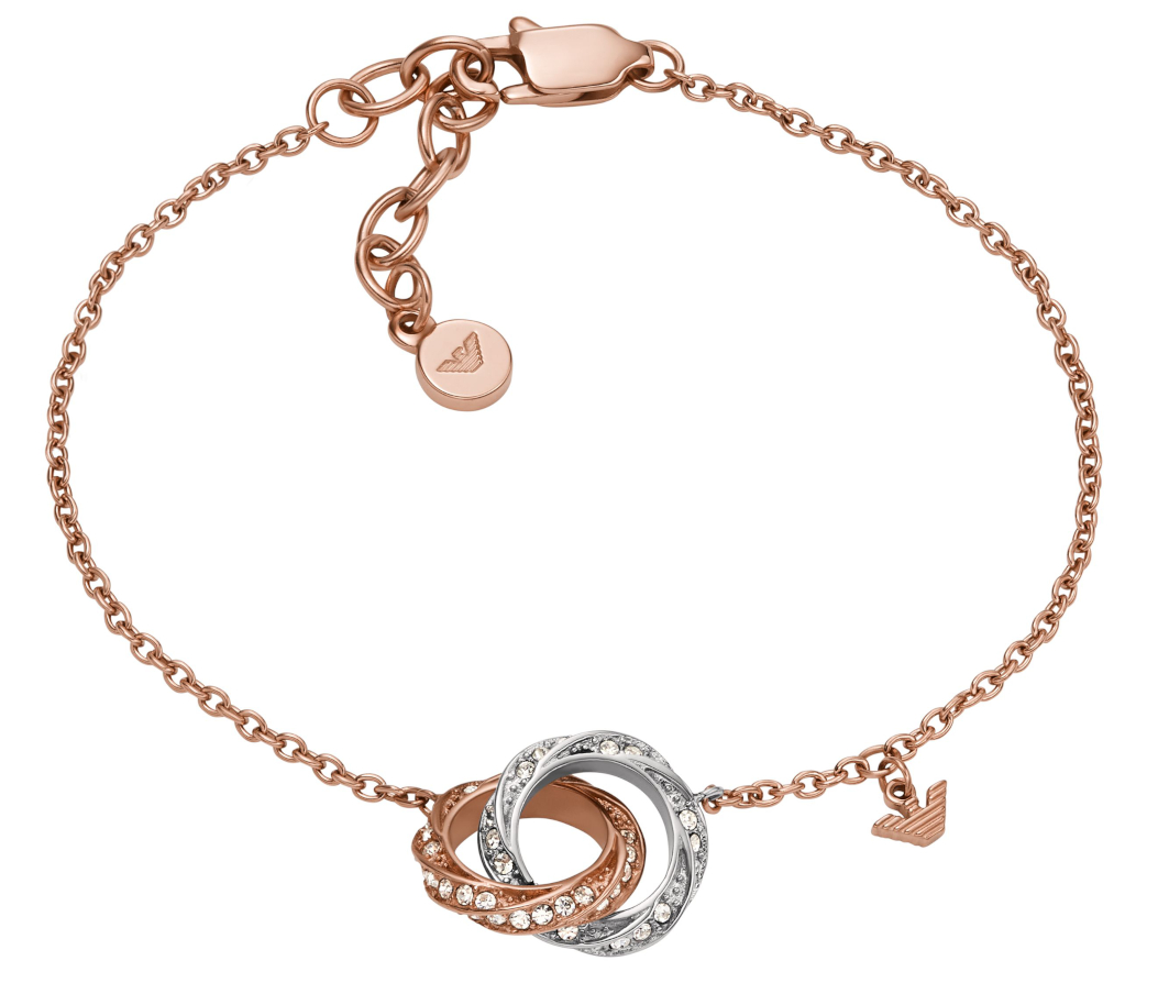 Letar du efter ett snyggt smycke för vardag och kväll? Emporio Armani Sentimental Logo EGS3005221 är ett mångsidigt armband i roséguld och silverfärgat stål. Looken avslutas med ljusa zirkoner. Hänget mäter 11,8 x 19 mm. Emporio Armani-smyckena levereras i tillverkarens originalförpackning.