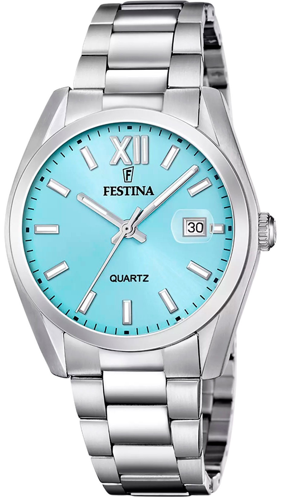 Festina Classic F20707/2 herrklocka är ett elegant mästerverk som utstrålar högkvalitativ expertis inom schweizisk urmakare. Boetten är tillverkad av rostfritt stål och är 40 mm bred och 9 mm tjock. Klockans totalvikt är 105 gram och den är utrustad med ett Miyota 2115 kvartsurverk med en gångtid på 3 år. Slitstarkt mineralglas skyddar den ljusblå urtavlan, som har självlysande visare och index som hjälper dig att se urtavlan i mörker. Datumet finns vid klockan 3, som är utrustat med ett litet förstoringsglas. Bredden på stålarmbandet från fästpunkten är 21 mm. Festina Classic F20707/2 är vattentålig ner till 50 m / 5 atm, vilket innebär att den är begränsat vattentålig (simning rekommenderas inte).