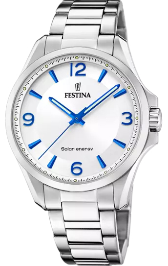 Herrklockan Festina Petite grey silver solar för herrar F20656/1 har en enkel urtavla och är en bas i din garderob. Den enkla urtavlan passar bäst till en kostym, och det 316L- kirurgiskt stålhöljet och armbandet är mycket hållbara. Det 41,5 mm breda höljet är väl proportionerat och mycket diskret. Det klassiska utseendet är avslutat med en silverfärgad solglasurtavla och självlysande blå visare som är syns i mörkret. Festina F20656/1 drivs av en solcells mekanismen som drivs av ljus. Festina herrklockor levereras i sin originalförpackning och har en två års garanti.