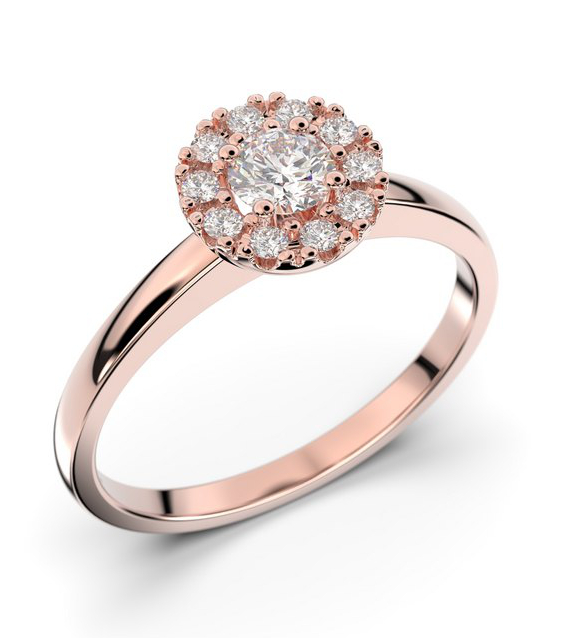 Festive Annabella 598-028-PK haloring med en 0,18 ct diamant och 10 0,01 ct diamanter runtom sig. Tjocklek 1,9 mm.