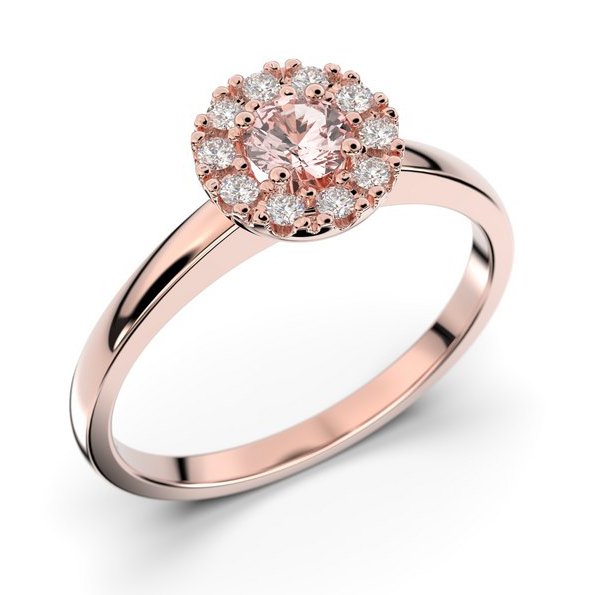 Festive Annabella 598-028M-PK ädelsten haloring med en 0,18 ct morganit och 10 0,01 ct diamanter runtom sig. Tjocklek 1,9 mm.