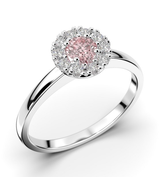 Festive Annabella 598-028M-VK ädelsten haloring Carmoséring med en 0,18 ct morganit och 10 0,01 ct diamanter runtom sig. Tjocklek 1,9 mm.