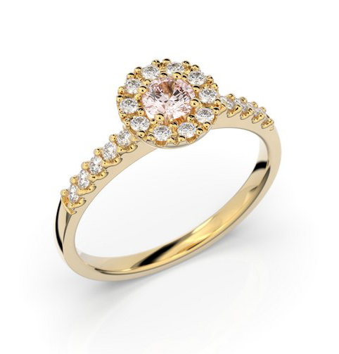 Festive Annabella 599-038M-KK morganit diamant haloring med en 0,18 ct morganit och 20 0,01 ct diamanter runtom sig. Tjocklek 1,9 mm.
