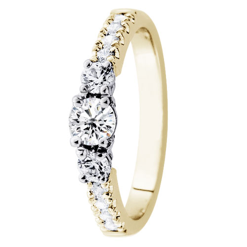 Festive Aurora 506-066-kkvk är en vacker diamantring av gul- och vitguld med sidostenar. Största delen av ringstorleken tillverkas på beställning, och då är leveranstiden 10-20 arbetsdagar. Diamantringar som beställs från fabriken har endast bytesrätt. Graverade diamantringar har ingen retur- eller bytesrätt. Mer information om ringen hittar ni nedan på Mer information -fältet.