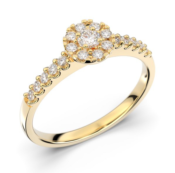 Festive Bella 606-025-KK haloring med en större 0,07 ct diamant och 18 0,01 diamanter runt om sig. Tjocklek 1,9 mm.