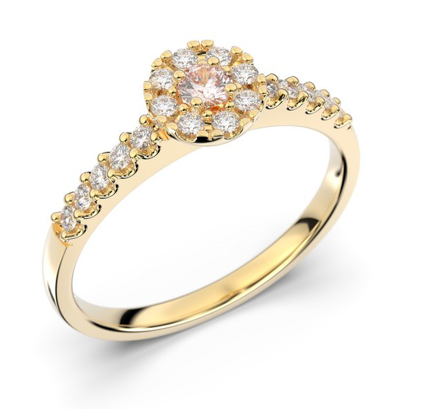 Festive Bella 606-025M-KK haloring med en större 0,07 ct morganit och 18 0,01 diamanter runt om sig. Tjocklek 1,9 mm.