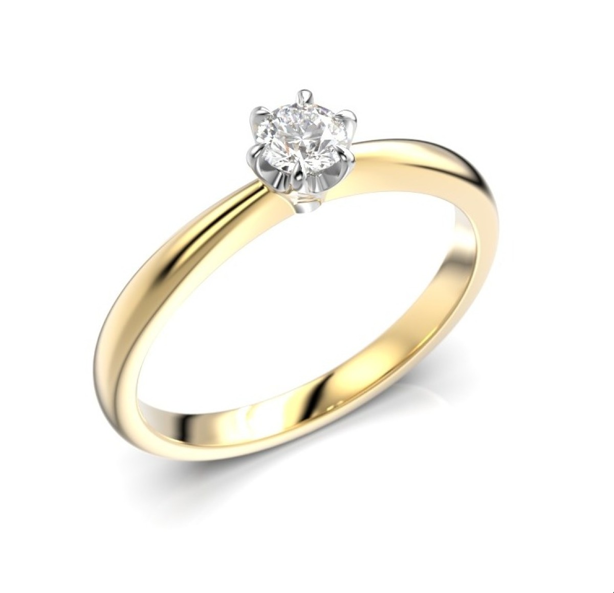 En enstensring med klofattning är bland det mest klassiska och mest åtråvärda vingelsring. Denna Festive Festive Classic 23 diamantring 0,20 ct med kloinfattning gultvitguld 686-020-KV är i 14K eller 18K gultguld med en styck diamant på 0,20 carat. Klor på denna diamantring är i vitguld. Bredd på solitär diamantring vid infattning är 3,8 mm. Går även att beställa i rödguld eller i vittguld.