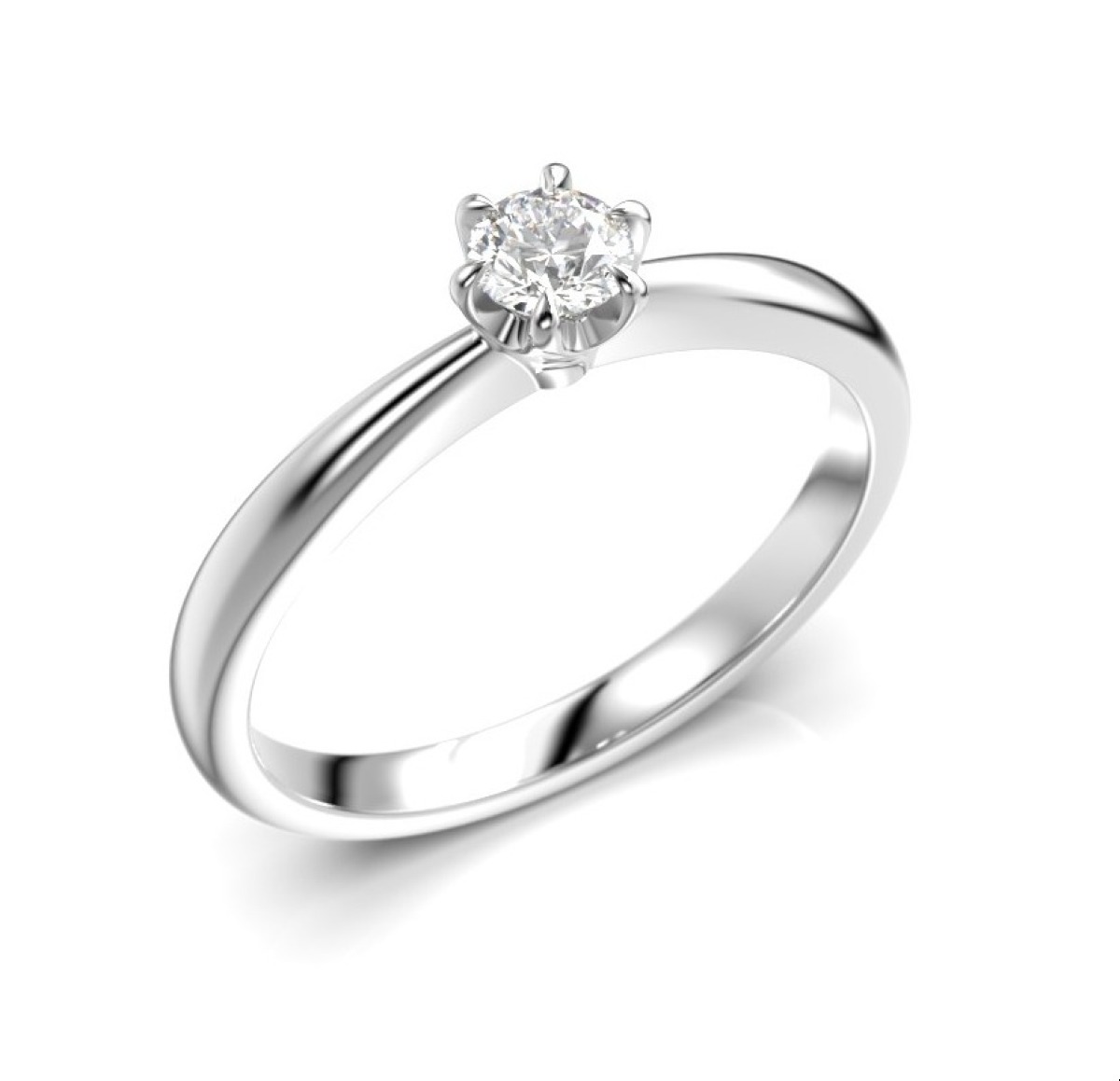 En enstensring med klofattning är bland det mest klassiska och mest åtråvärda vingelsring. Denna Festive Classic 23 diamantring 0,20 ct med kloinfattning vitguld 686-020-VK är i 14K eller 18K vittguld med en styck diamant på 0,20 carat. Bredd på denna solitär diamantring vid infattning är 3,8 mm. Går även att beställa i rödguld eller i gultguld.