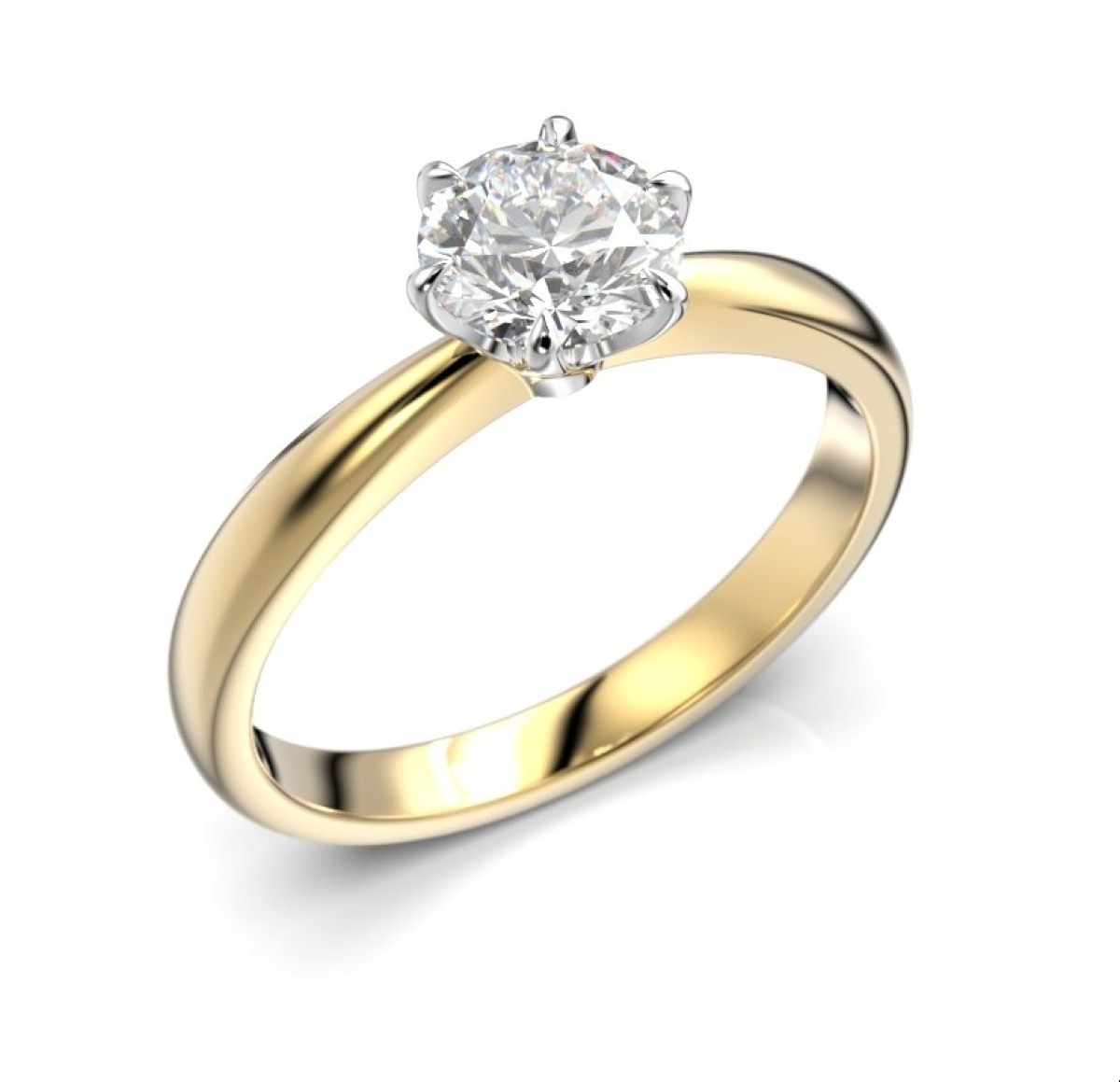 En enstensring med klofattning är bland det mest klassiska och mest åtråvärda vingelsring. Denna Festive Classic 23 gultvitguld diamantring enstens 23 0,70 ct 686-070-KV är i 14K eller 18K gultguld med en styck diamant på 0,70 carat. Klor på denna diamantring är i vitguld. Bredd på solitär diamantring vid infattning är 6,5 mm. Går även att beställa i rödguld eller i vittguld.