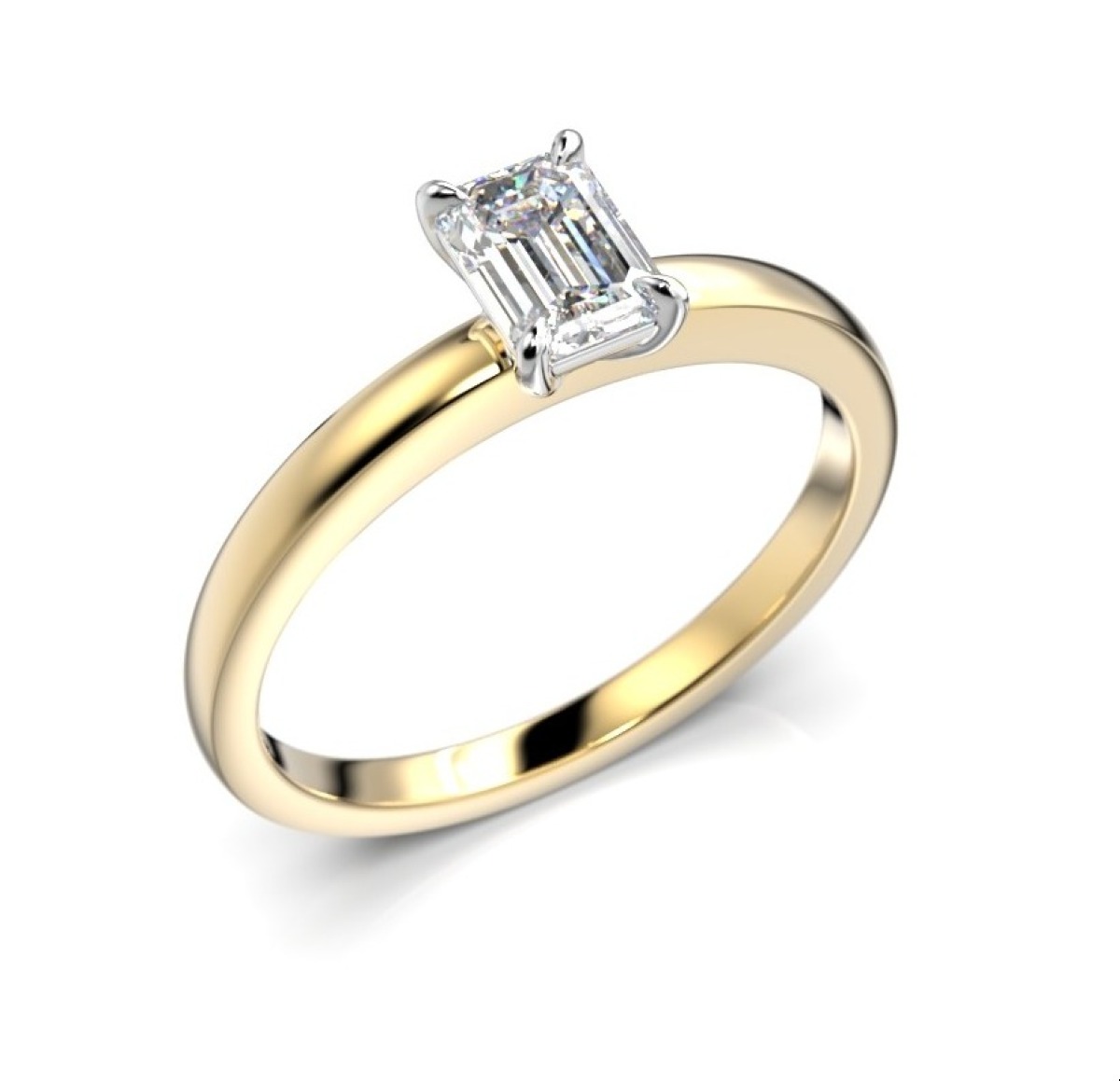 Diamantringar med smaragdslipade stenar är mycket stilren, och har en tydlig och klar slipning. Diamanten på denna Festive diamantring Serena Emerald gultvitguld 0,50 ct 6684-050-KV är infattad i fyra klor i vittguld, och skenan är i 14 eller 18 karat gultguld. Ringens bredd vid infattning är 5,20 mm.