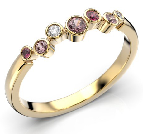 Festive Drop Pink diamant Carmoséring 644-015P-KK är en modern klassiker med bezelinfattad diamanter (0,02 + 0,01 ct), pink safirer (0,05 + 2 x 0,02 ct), och rubiner (0,02 + 0,01 ct). Anpassad för att ligga perfekt bredvid en alliansring. Bredd 2 mm. Största delen av ringstorleken tillverkas mot order, och då är leveranstiden 10-20 arbetsdagar. Diamantringar som beställs från fabriken har endast bytesrätt. Graverade diamantringar har ingen retur- eller bytesrätt. Mer information om ringen hittar ni på Mer information -fältet.