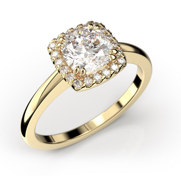 Festive Elsa 587-090-KK med en 1,00 ct cushionslipad mittsten och 20 0,005 ct stenar runtom sig.